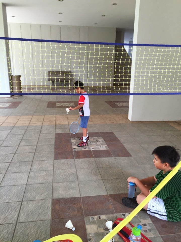 This is how it looks after the 3rd class at Singapore badminton school @ Clementi. 3 weeks ago, he does not even touch badminton racquet.